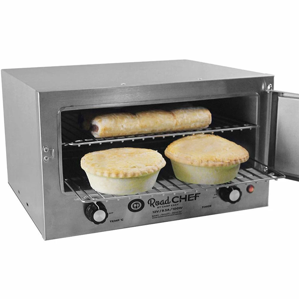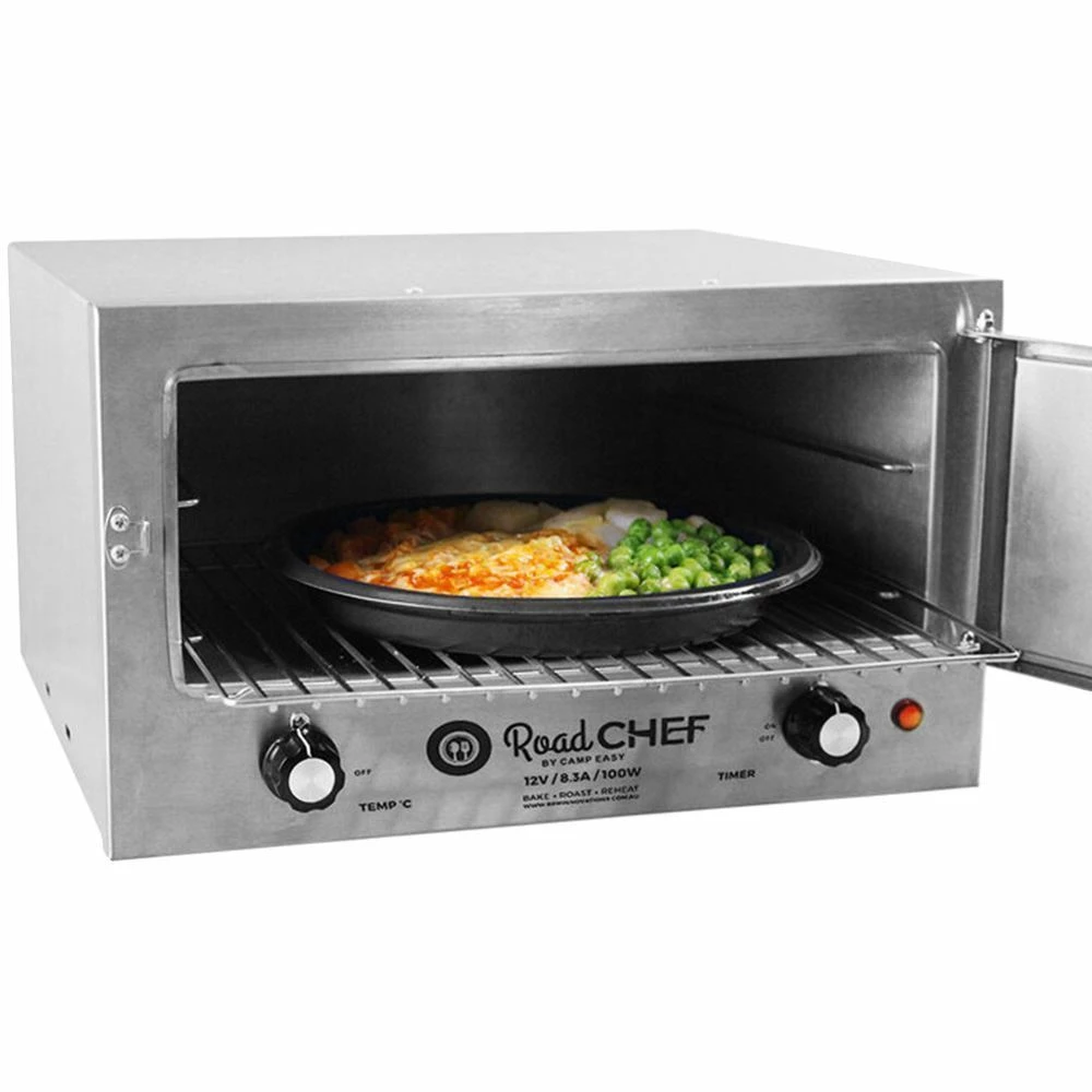 Arrive at your destination with a delicious hot meal waiting for you, by adding a 12 Volt Travel Oven from Road Chef to your set up.