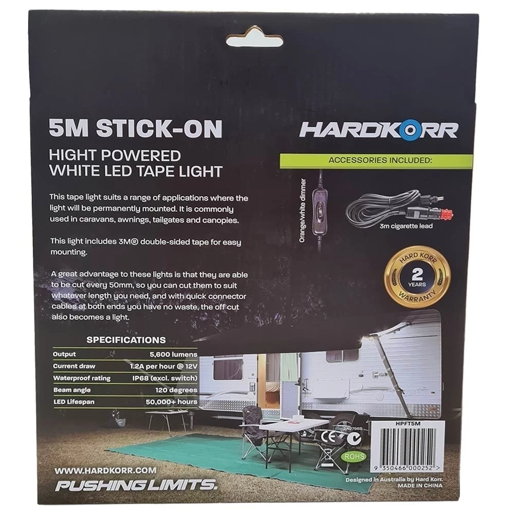 Use the High Powered Flex Tape from Hard Korr around the garden, on your campervan, tent, or boat for extra bright, waterproof and reliable illumination.