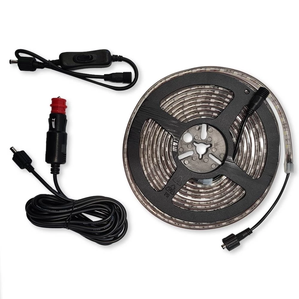 - Includes 1 x LED adhesive strip, 1 x switch, 1 x cigarette plug & lead