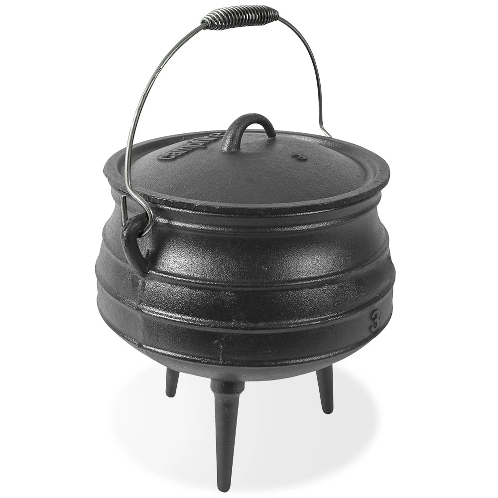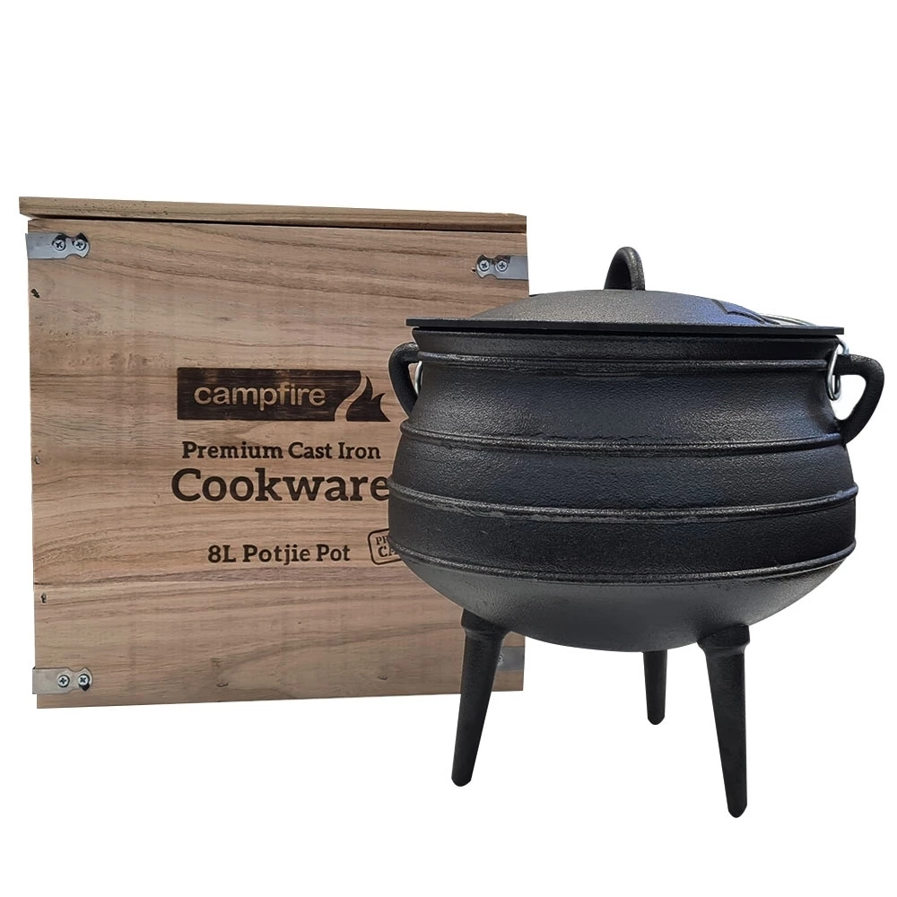 Cook up a creative feast on your camping adventures in the Cast Iron Potjie Pot from Campfire.