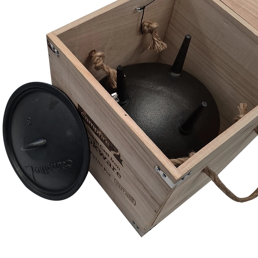 This traditional style of pot originated in South Africa and features a unique 3-legged design which props it up over your coals, allowing air to circulate for more consistent cooking results. It’s pre-seasoned making it ready to go straight out of the packaging, while the heavy-duty base and walls distribute the heat evenly. It also features a durable steel spiral carry handle which is comfortable to grip so you can move it around easily.