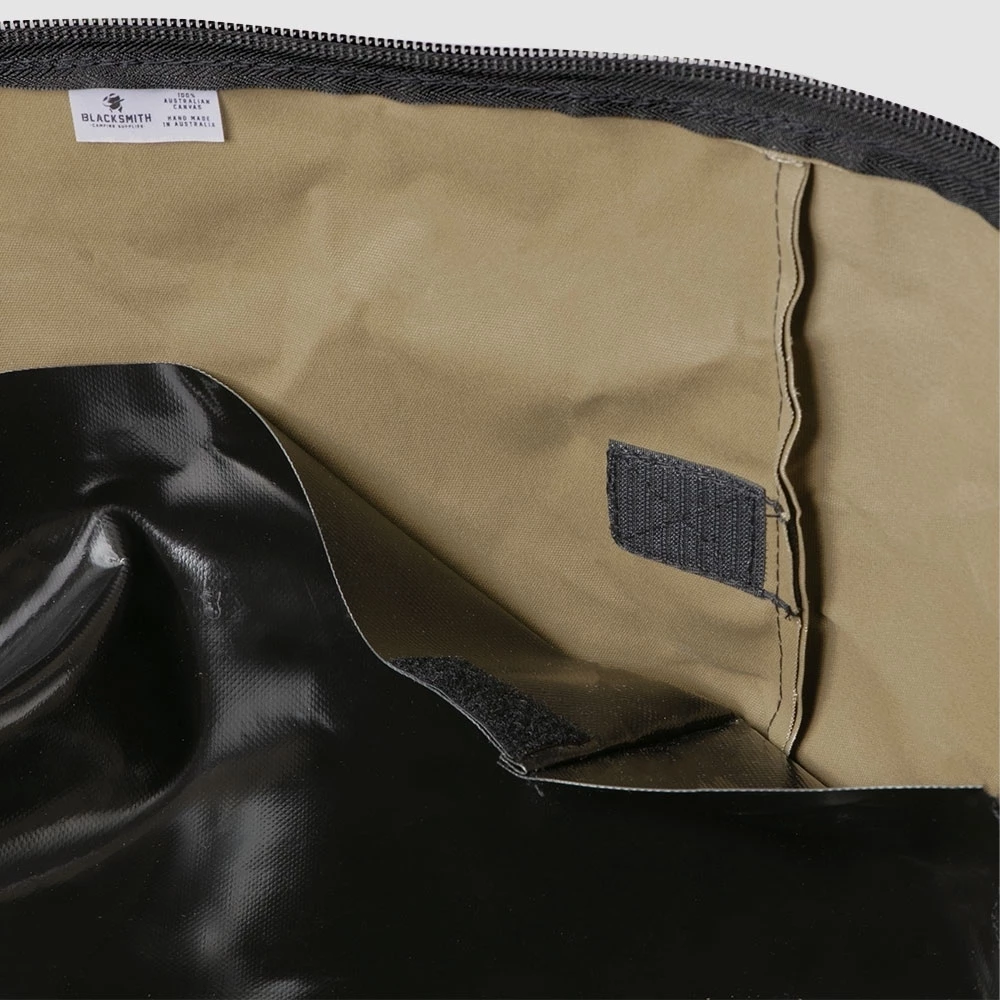This bag is made in Australia from Military-grade Dynaproofedâ„¢ 505gsm Australian-made canvas for a breathable, rotproof and UV-resistant construction. Open the flip-top lid via the heavy-duty, smooth-gliding spiral zip. Stitched with a durable, core-spun poly/cotton thread, it’s reinforced 38mm webbing handles allow further support when carrying. Two handles on each side also allow two people to carry or hoist from compactly packed car boots. The removable premium quality, 670gsm tear-stop PVC insert is both reinforced and spread-coated with gloss acrylic lacquer. Developed by HVG, this PVC boasts the highest quality resins, UV stabilisers, fire retardant inhibitors to protect from the outdoor elements too, meanwhile easy to clean.