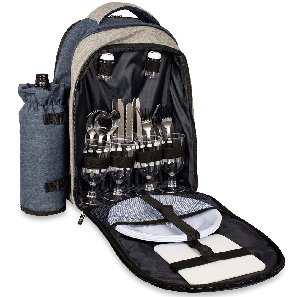 The 4-Person Picnic Backpack by Avanti carries culinary convenience from the kitchen cupboards to rugged picnics.