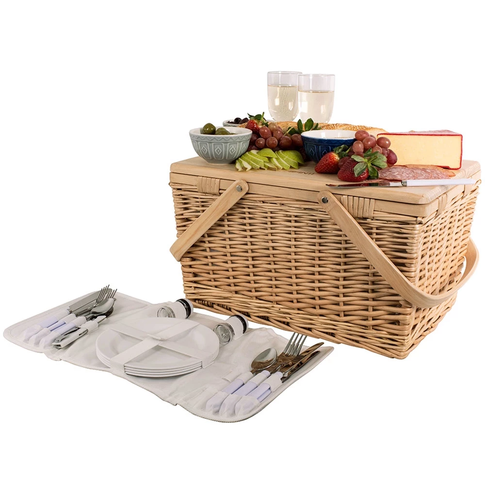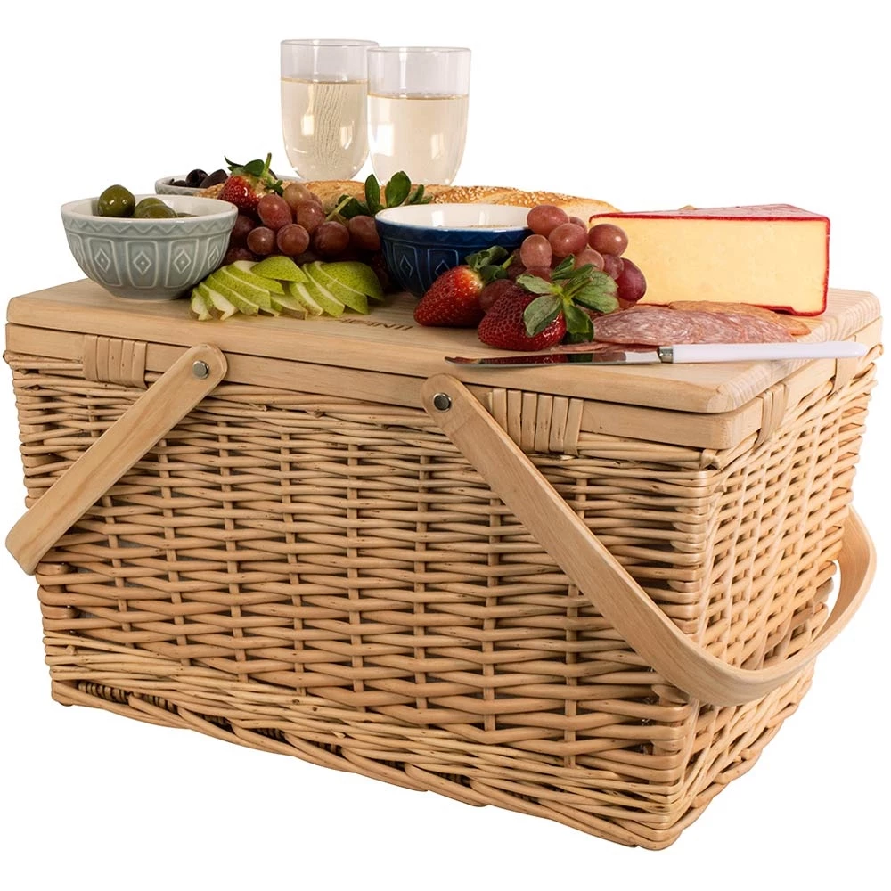 The 4-Person Pine Wood Top Insulated Basket by Avanti is your slick wicker snack carrier for outdoor picnics – from the beachside to the backyard.