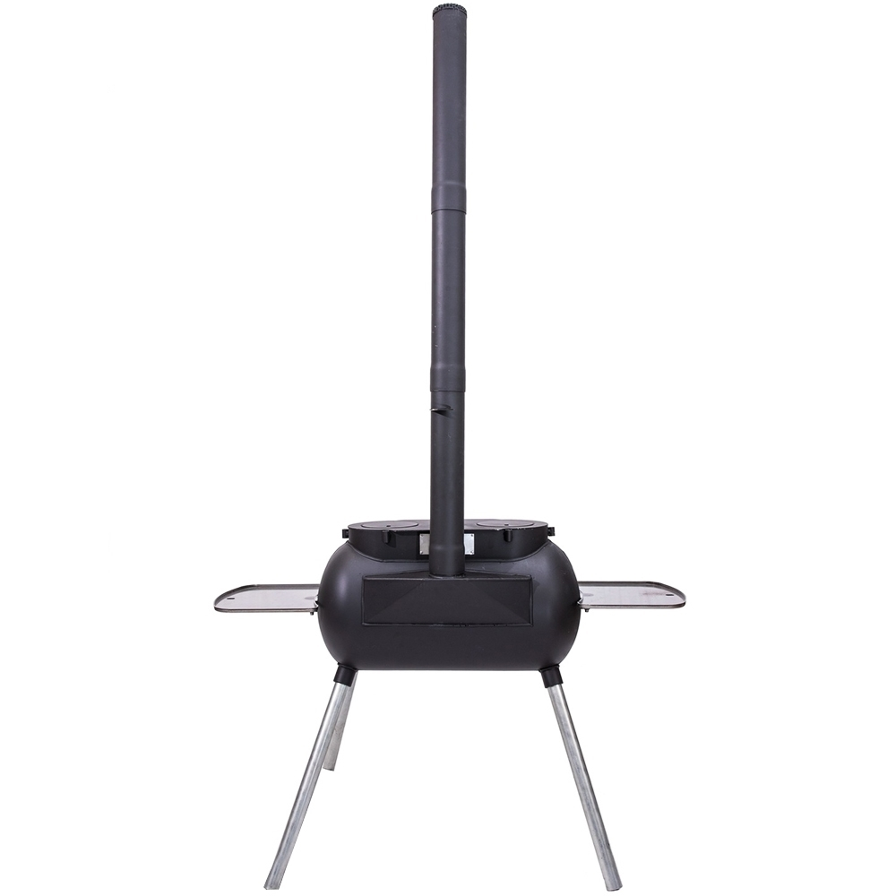 This larger cooker has been in the works for over a decade and has finally been perfected to ensure that you have the best outdoor stove possible to use at home. Constructed from heavy-duty steel, this unit is a great heater as it has a huge open front door to warm you up when you’re sitting outside. It can also be used as a stove with an open stop design that allows you to remove the stovetop to cook directly over the fire to infuse those fantastic wood smoke flavours.