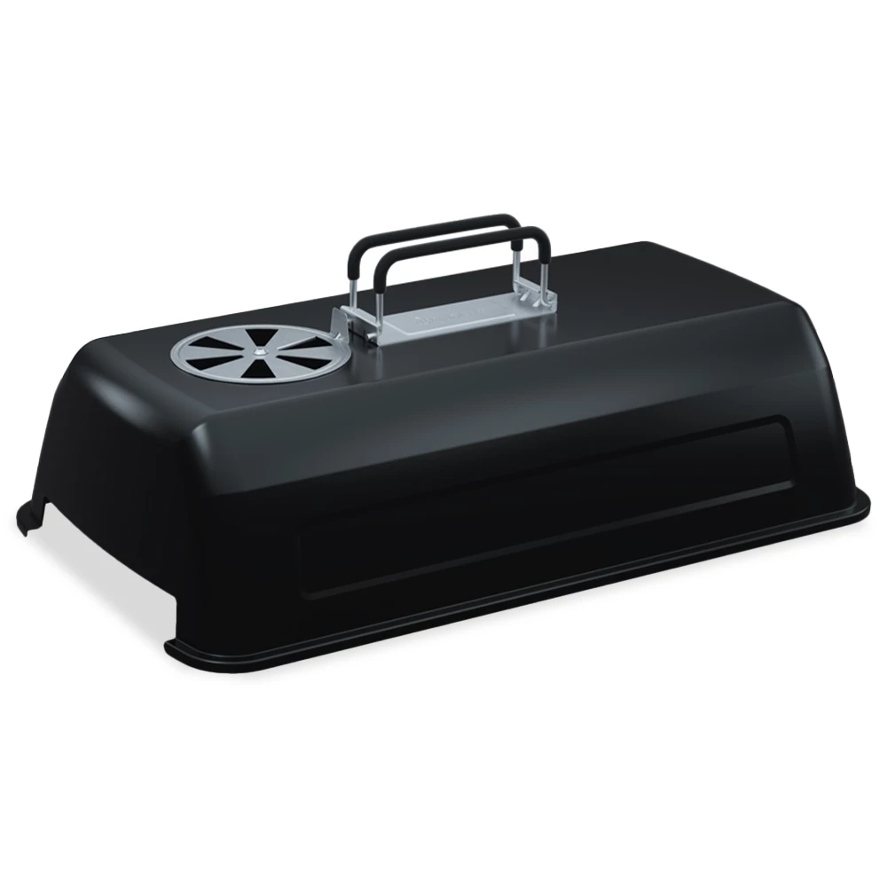 Having the lid in place facilitates a concentrated cooking environment, while the adjustable air vent on top allows greater heat control. The Grill Lid is of steel construction with a high-quality enamel coating. With durable, deployable heat-resistant handles, it fits perfectly over the top of the grill,. with side cutaways forming a neat and secure hold around the handles of your FirePit.