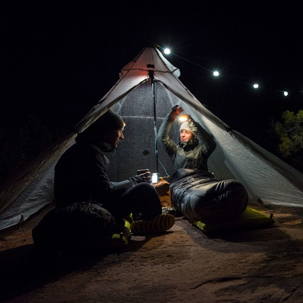 Create overhead lighting over your camp set up with the charming and functional SiteLight String from BioLite.