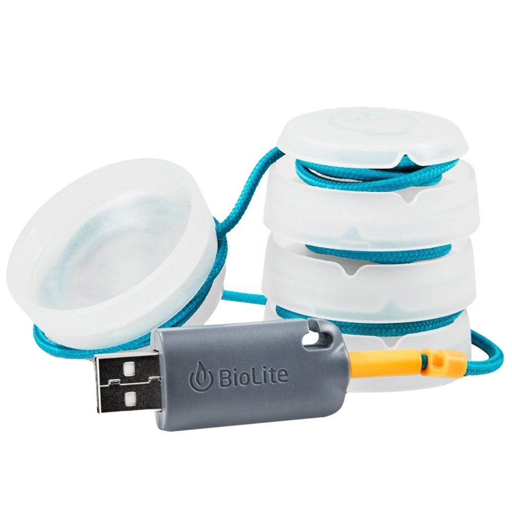 Hang inside or over your tent for illumination, or off a tree for overhead lighting when relaxing in your campsite. This product features four lights that provide a total of 150 lumens of ambient glow, daisy-chainable and set on 10ft of cord for the perfect mix-and-match set up. They’re easily powered by the separately available lanterns from Biolite, or any USB power source, through use of the included adaptor.