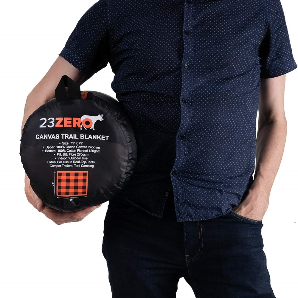 If you like your sleeping gear to be roomy and comfortable – yet compact to carry and easy to set up, the 23ZERO Canvas Trail Blanket is perfect for you and your camping adventures! Built with the same hard-wearing materials that 23ZERO’s popular sleeping bags are widely known for, this cotton canvas double-size trail blanket offers warmth, comfort, convenience, and durability that few others can match.