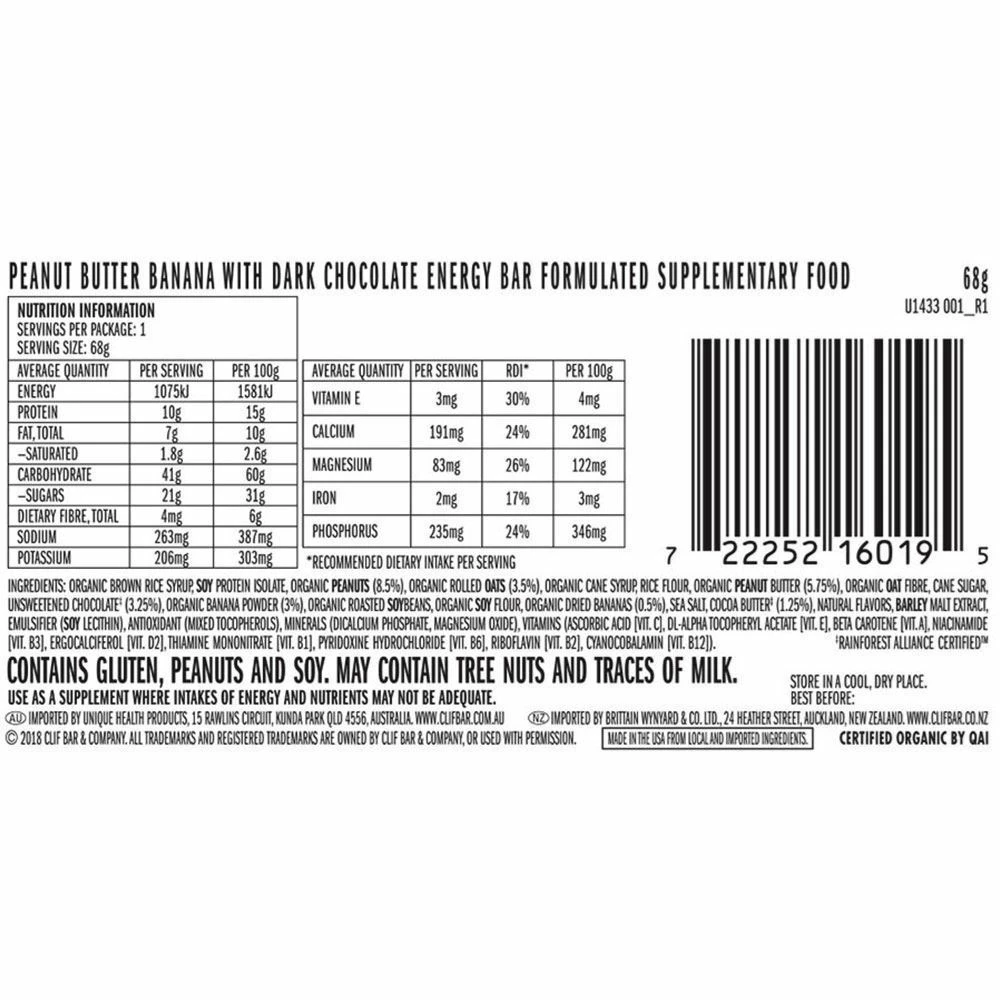 Top up your energy levels on your outdoor adventures with the yummy Peanut Butter Banana with Dark Chocolate Clif Bar.