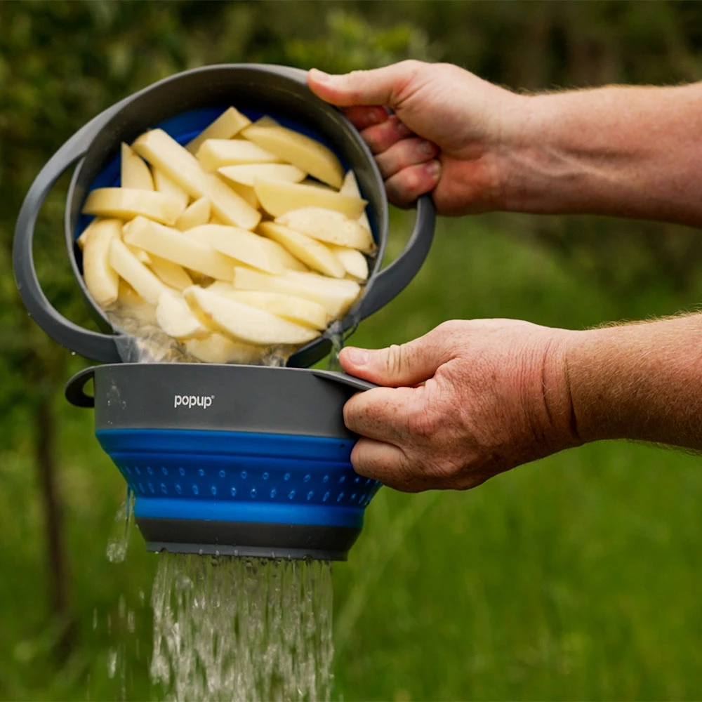 Food prep is a breeze at the campsite, with the lightweight space-saving and collapsible Colander & 2 Bowl Set from Popup.