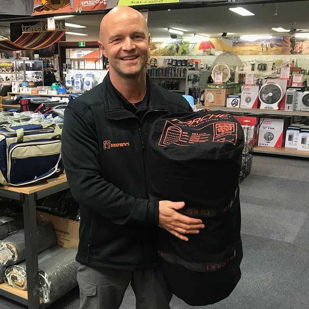 The draw cord hood can be cinched in to keep your head warm, and the flannel lining feels almost like your quilt at home which will keep you snug. The great news about the Canvas Cold Mountain, is that it just rolls up like a swag into its zippered carry bag, ready for you to throw in your car and hit the road.