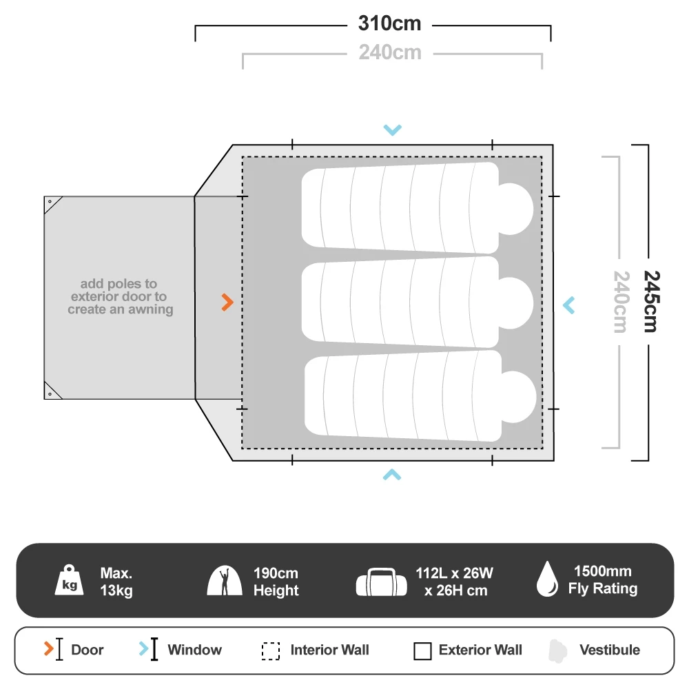 - Compatible with separately available EVO awning, this awning can also connect to additional Lighted Instant Up Gazebo 2.4m