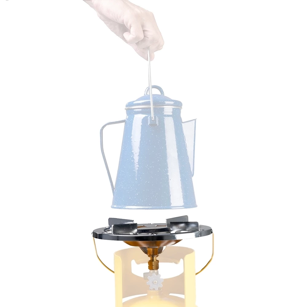 This stove conveniently fits directly to the cylinder via a 3/8″ LH valve and has manual ignition for more control. The Single Burner Manual Stove is completely nickel plated to make it durable and easy to clean and features an easy-grip carry handle and large drainage holes to protect the flame in the event of cooking pot spills.