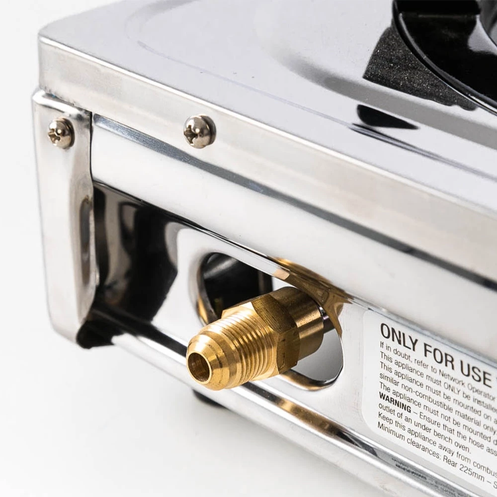 Featuring a whopping 12,800 BTU burner, you’ll be able to cook your meals in half the time. This Cooker also has an integrated piezo ignition for easy lighting and cast iron burners with brass inserts. The stainless steel finish makes it durable and easy to clean and its size fits pots, pans, woks and BBQ plates. It also comes with a hose and an LCC27Ā regulator included.Ā