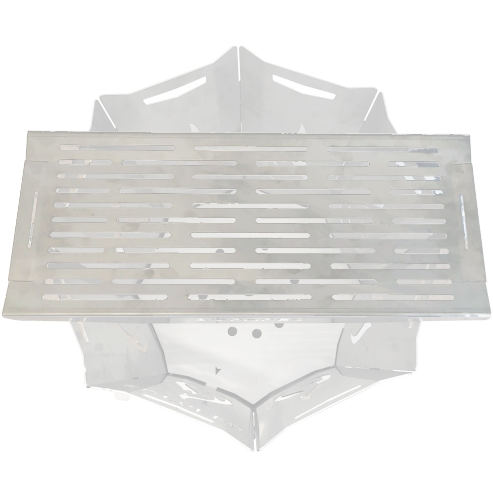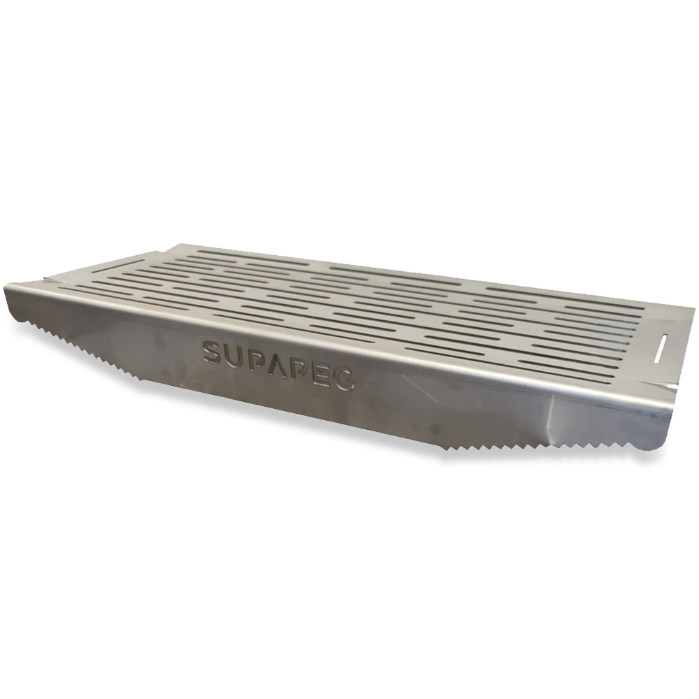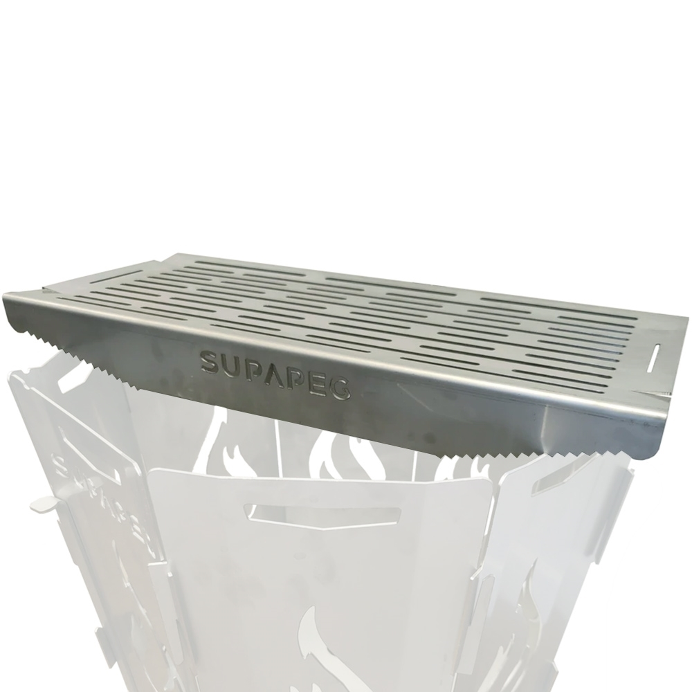 Australian-made, this grill is constructed from sturdy steel and designed to fit effortlessly onto the Supa Peg Frontier Fire Pit. Laser cut for easy cleaning and manoeuvring, kick back while the kids handle clean up! Its large cooking surface has this grill perfect for bolstering those backyard barbies or feasting by the campfire, while a low profile bodes well for convenient packing.