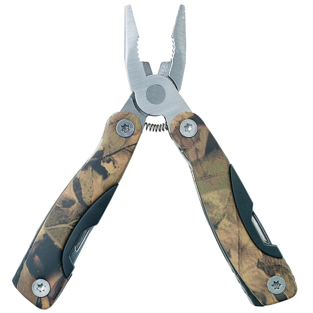 This multi-tool features a conveniently compact design that’s constructed from stainless steel with a camouflage treatment on the housing to ensure it doesn’t stick out like a sore thumb. This tool comes with a knife, flathead screwdriver, standard pliers, saw, scissors, bottle opener, wire cutters, Phillips screwdriver and more at your disposal.