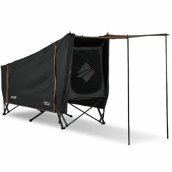 Flawlessly portable with a quick-sticks setup, near-verticle side walls also allow additional room to overdeliver for the bigger bivvy-ers. Owing to a powder-coated frame that resists the outback brutality with corrosion-resistance, this stretcher tent stands up to campsite chaos – literally. No-See-Um mesh beats both the bugs and the muggy humidity, thanks to supreme ventilation and protection from insects.