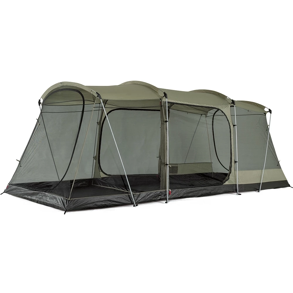The frame design of this tent makes it super quick and easy to set up. The Bungalow 9 has a central room with 2 large bedrooms or screen rooms on either side – so it’s a very versatile setup. The tent also features near-vertical poles and high ceilings which creates maximum roominess and headroom.