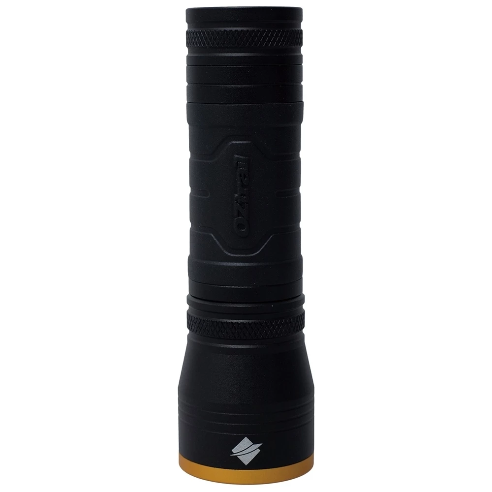 The LED light source never needs replacing but batteries do. Power Lock technology protects your torch batteries from their greatest enemy, charge leakage. Disengage the batteries in the Lumos F300 Flashlight from OZtrail for storage so you can rely on it to shine when you need it most.