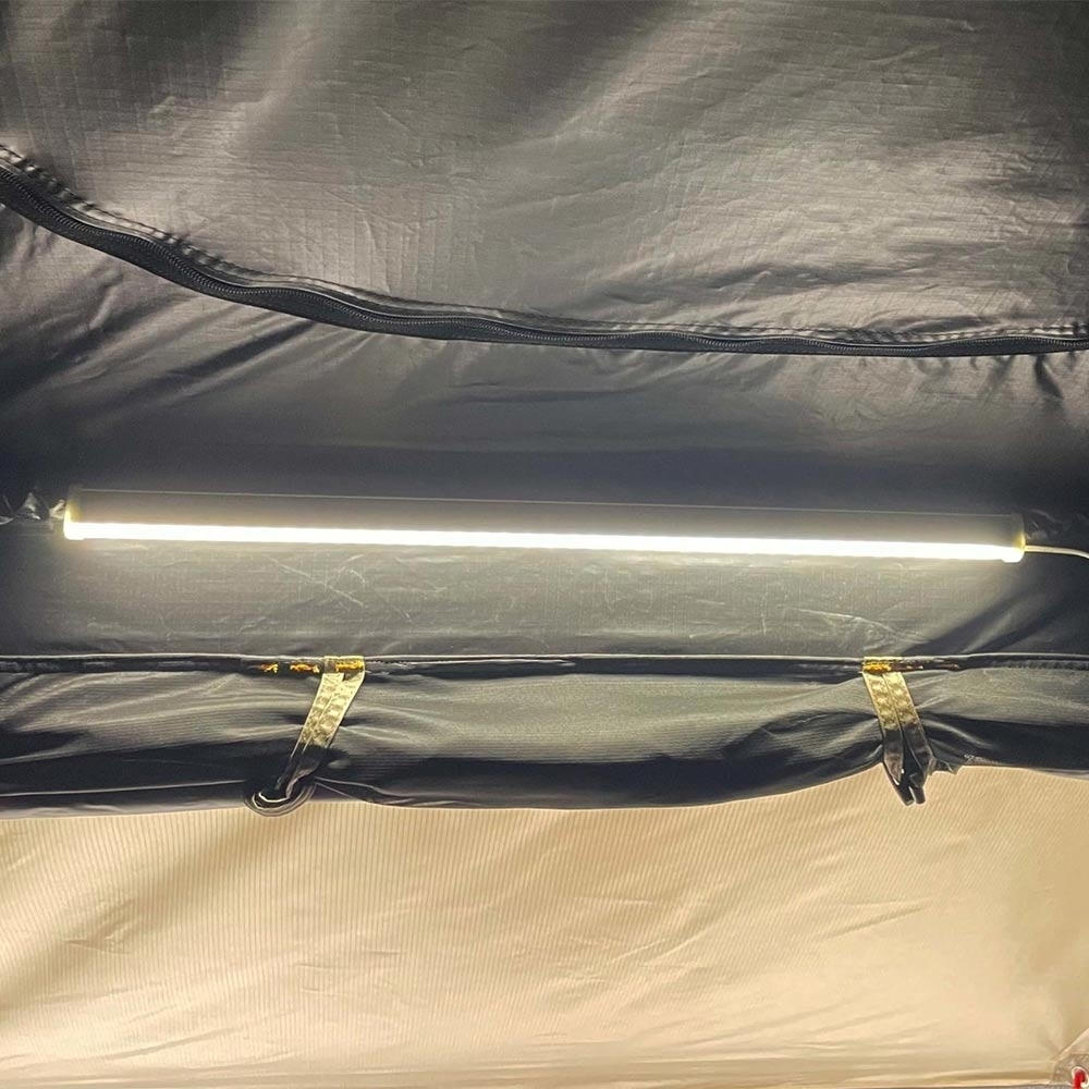 Power up with T-slot racks that enable solar panel mounting – and turn it on when off the grid, with LED strip lighting featuring USB plugs and storage pockets for power packs (not included). Keep the tackle together in the internal storage pockets and your kicks from heading up sticks with external shoe pockets. Your sleep setup can remain stowed and secured in the tent to maximise the storage space in your vehicle. Built in elastic shock bands make it easy to pack flat without the excess flap.