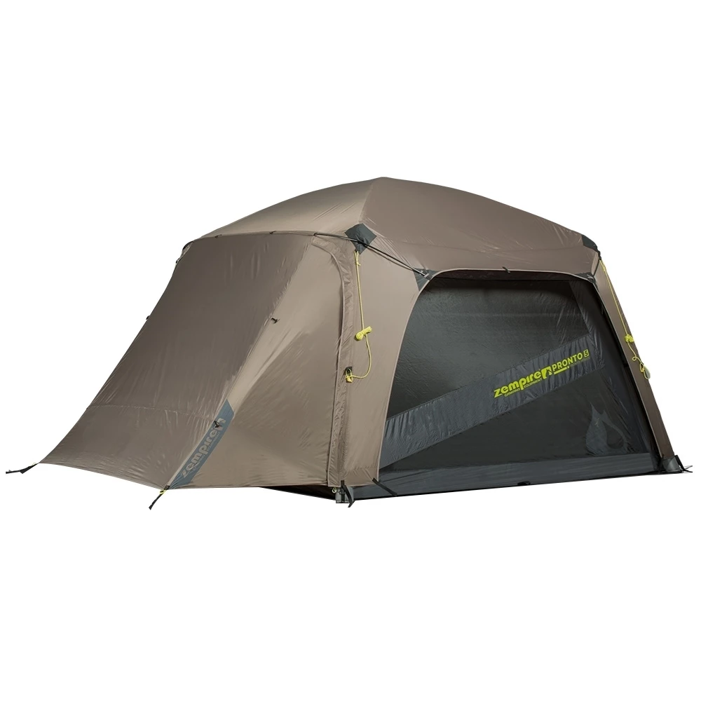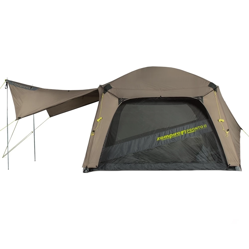 You can also set up the front fly door as a gullwing awning for protected shade while relaxing. For a fast and portable shelter at the campsite, pitch the Pronto 5 Tent V2 from Zempire.