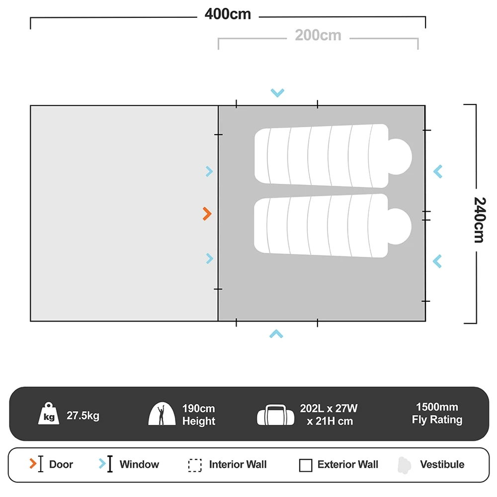Keeping all the beloved original features like the 30-second setup, high quality 8 oz Ripstop polycotton canvas, the large attached awning and the whizz-bang modular design. But… wait for it… it’s now gone to the next level with a SkyMesh Skylight built into the roof with easy internal zip open/closure allowing for viewing and great ventilation. It comes with a 210T silver-coated Ripstop polyester fly to provide increased ventilation and reduce condensation. They’ve also rejigged the zips on the awning so if you want to attach accessories like walls, you’ll be even more protected from wet weather.