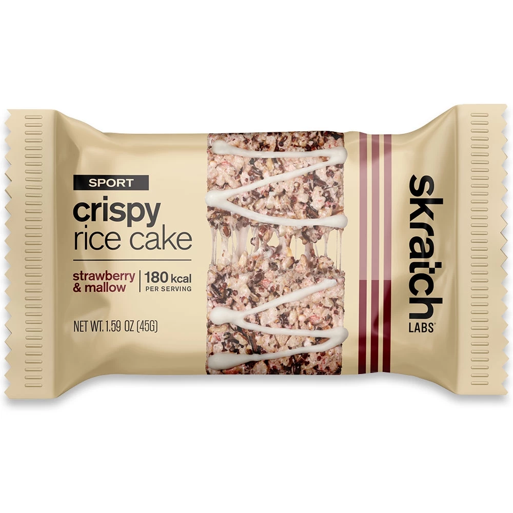 Enjoy chewy, gooey goodness with the Skratch Labs Crispy Strawberry & Mallow Rice Cake.