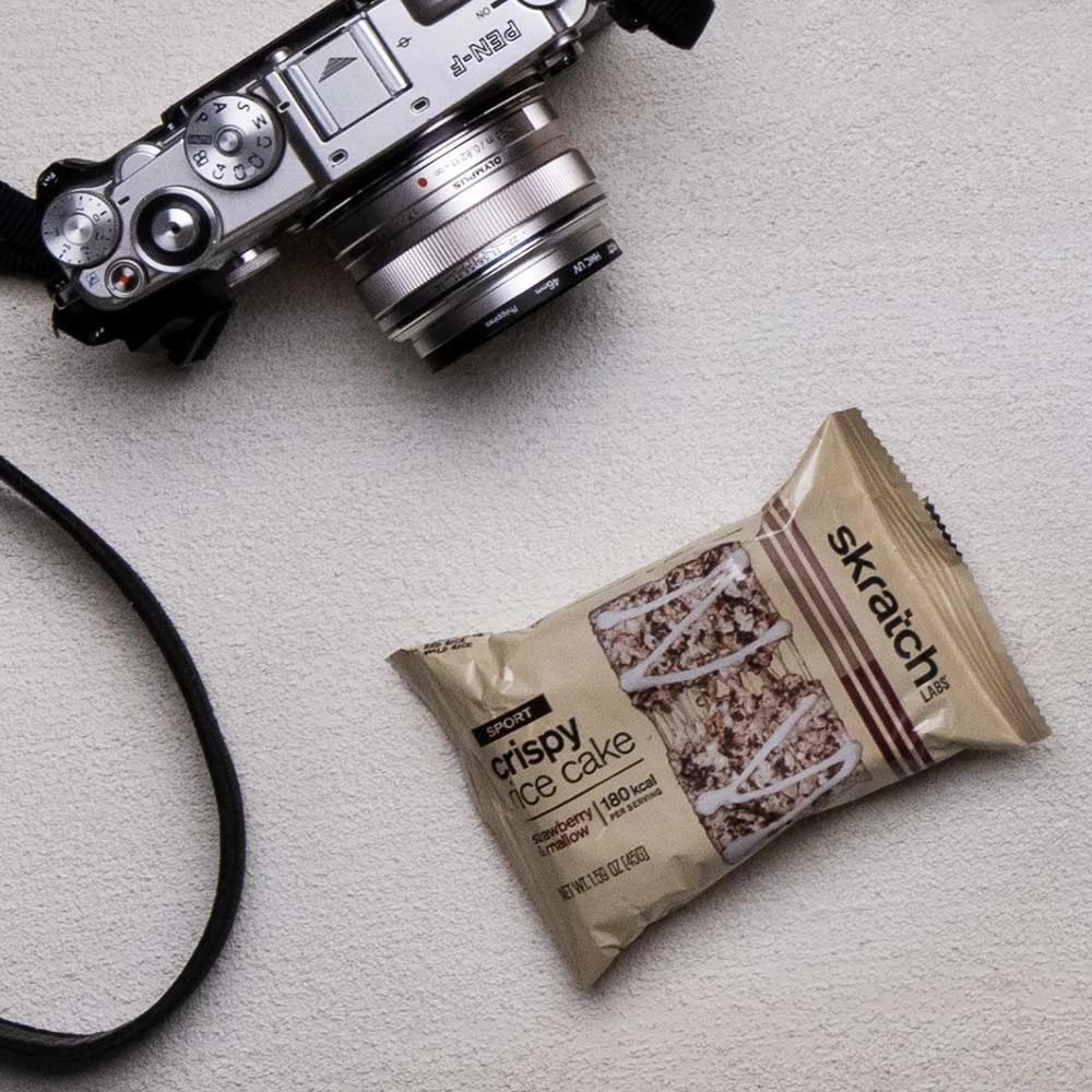 For a crispy treat that will fuel your feet, try the Skratch Labs Crispy Rice Cake Strawberry & Mallow!