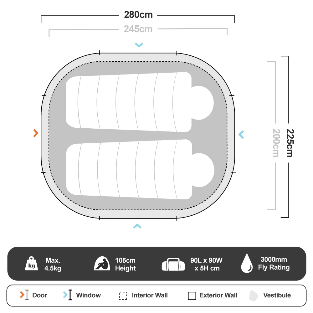 The Speedy Blackhole also has fully taped seams to prevent leaks and features No-See-Um mesh windows for ventilation and insect protection. You won’t lose your keys or phone, as there are also interior accessory pockets to keep your essentials safe and sound. Take your Blackhole 3 from Explore Planet Earth on your weekend getaways for quicker setups and later sleep-ins.