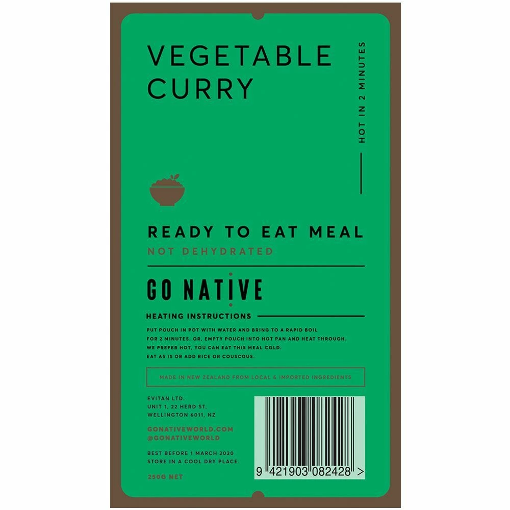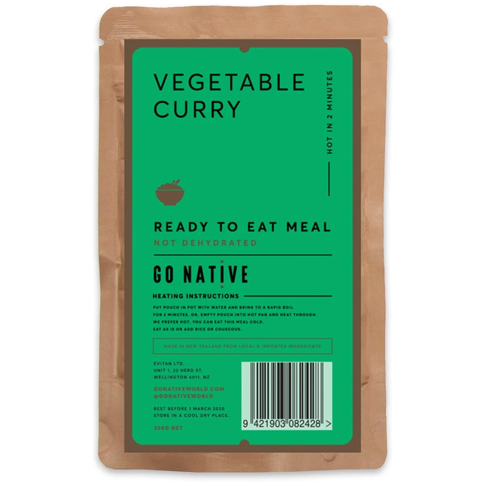 The Go Native Vegetable Curry is delicious cold or is easily reheated by simply dropping the whole sachet is a pot of boiling water for a couple of minutes, tear off the top and enjoy straight from the packet, or add to some rice or couscous for a complete meal.